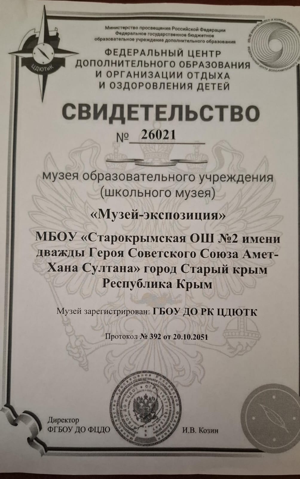 Муниципальное бюджетное общеобразовательное учреждение «Старокрымская общеобразовательная школа №2 имени дважды Героя Советского Союза Амет-Хана Султана» Кировского района Республики Крым